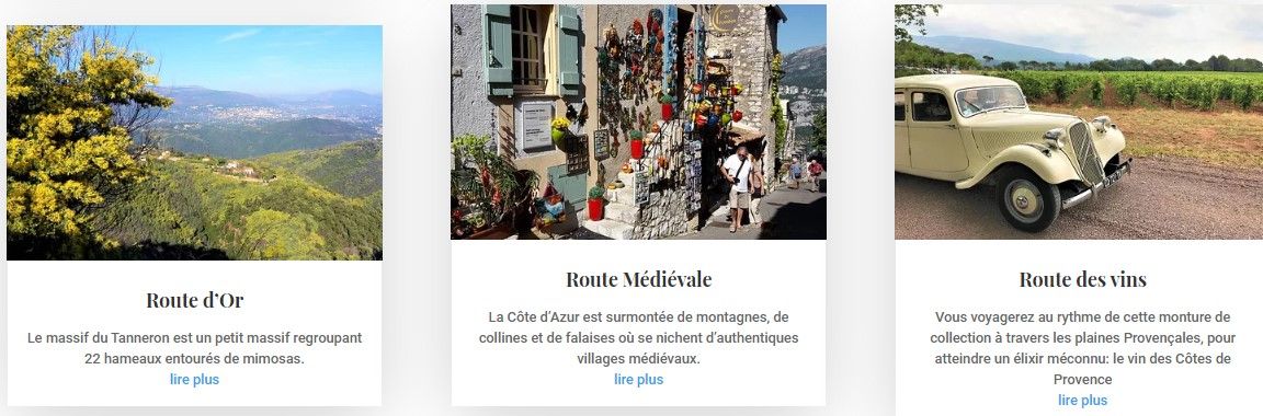 enTract’Tour vous propose de sillonner les routes de la Côte d’Azur en voiture de collection à bord de la mythique Citroën Traction Avant. Nous avons défini différents circuits mais restons à votre écoute pour vous proposer un tour sur mesure en fonction de vos attentes.