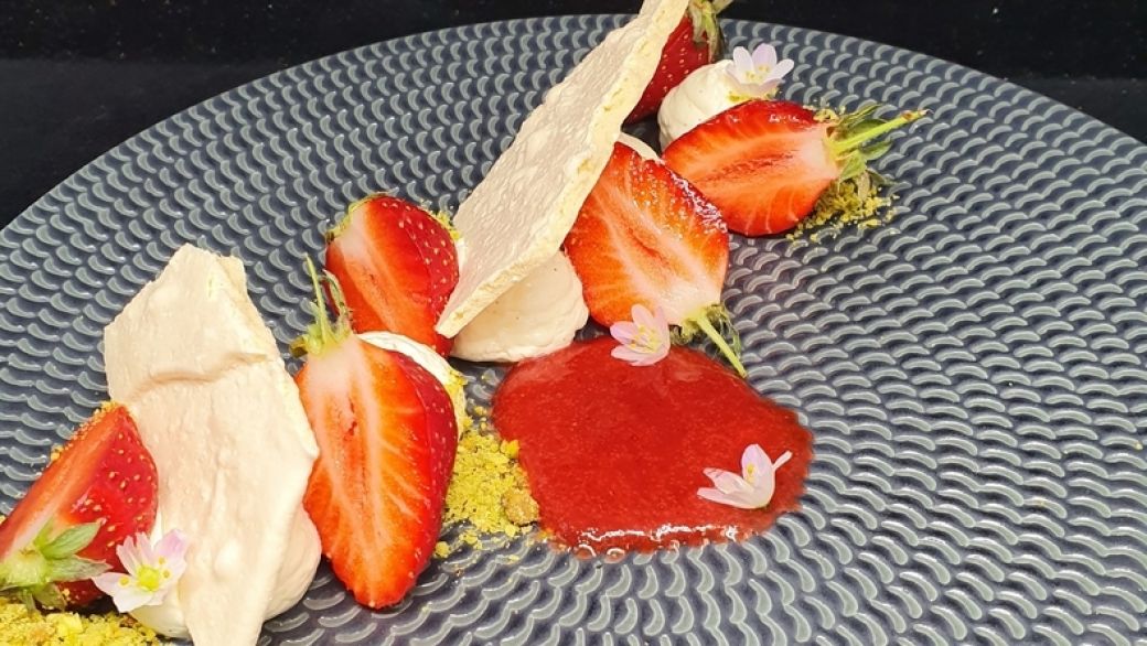 - Fraises du pays, mousse mascarpone à la vanille et tuile aux amandes 10,00€