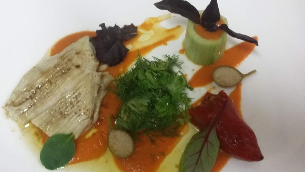 Mediterranean sea bream, cucumber, wakamé and dill, cauliflower mousseline with yuzu